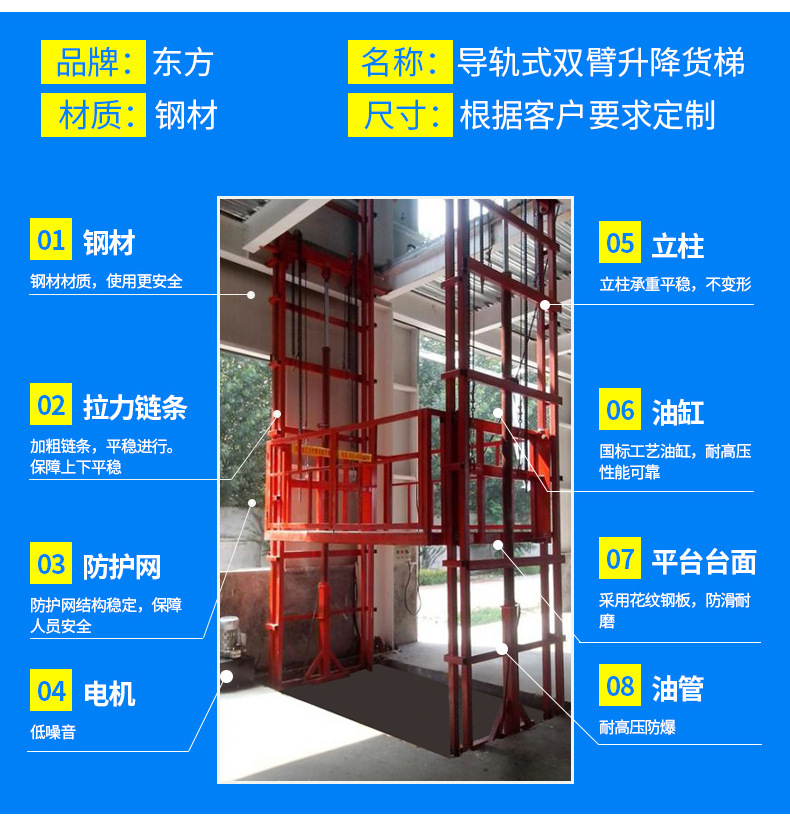摘要:導軌式升降平臺作為垂直上升下降平臺,很方便與貨物在樓層之間的運輸,所以升降平臺設備應用領域廣泛,社會貢獻很大。
